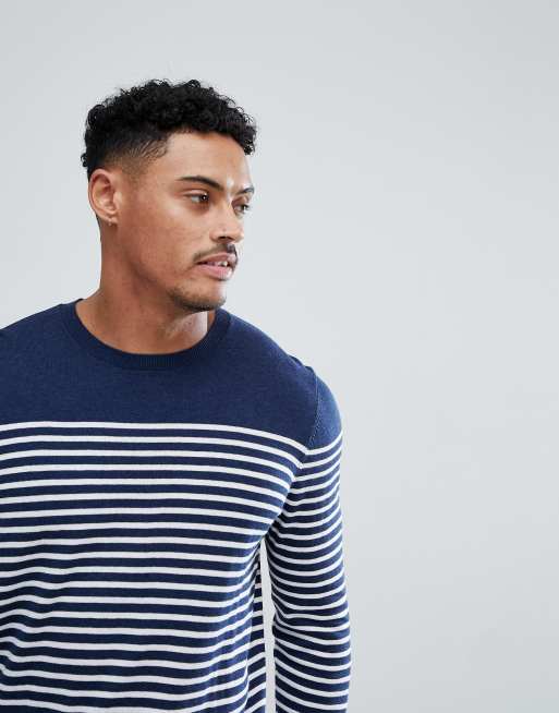 ASOS DESIGN knitted breton stripe jumper in navy Very well made.