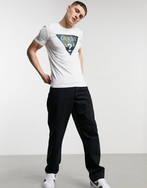 Guess T shirt with triangle front logo in white ASOS Very well made.