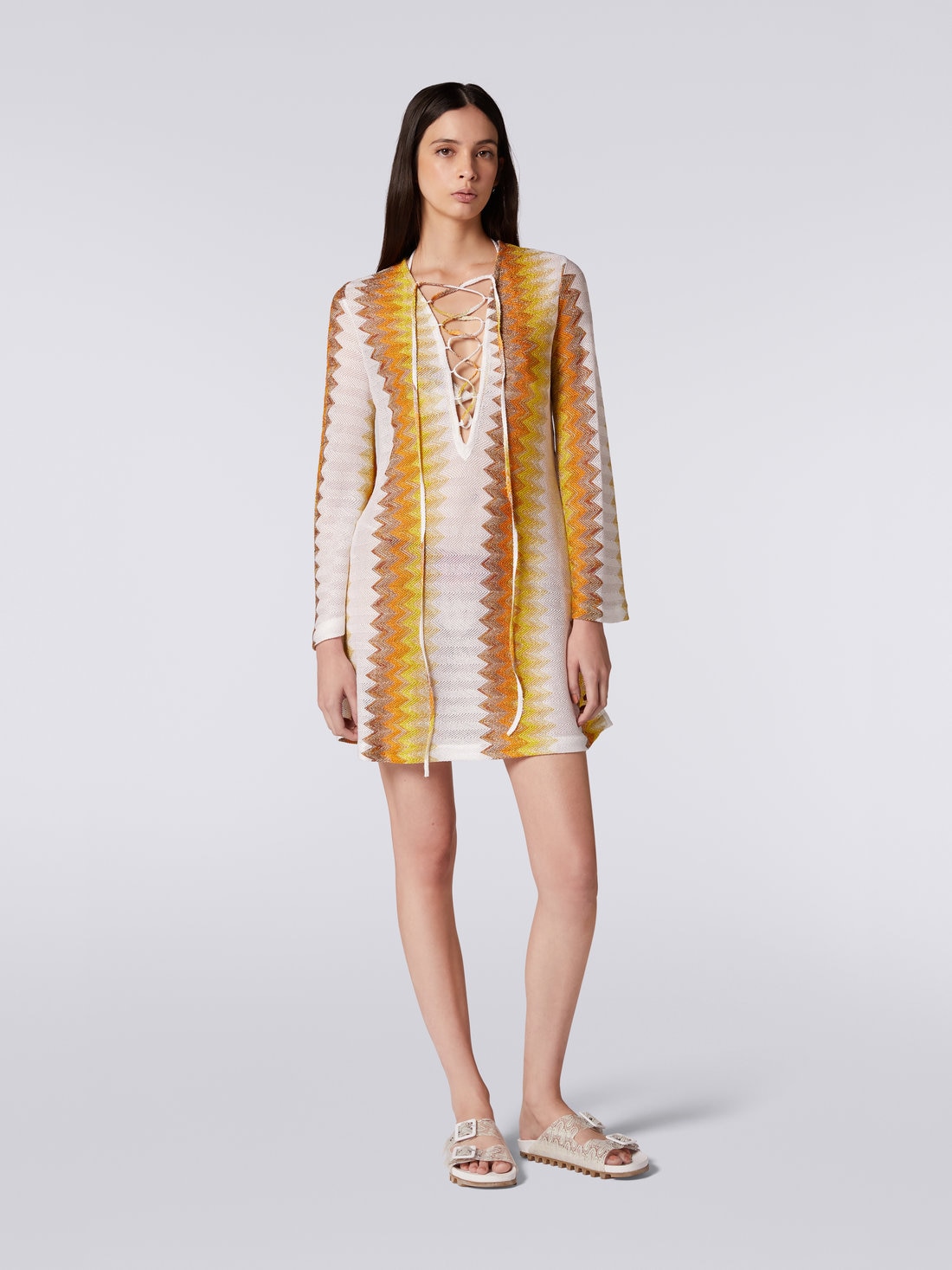 Long sleeved kaftan in viscose blend with zigzag lam White Very well made.