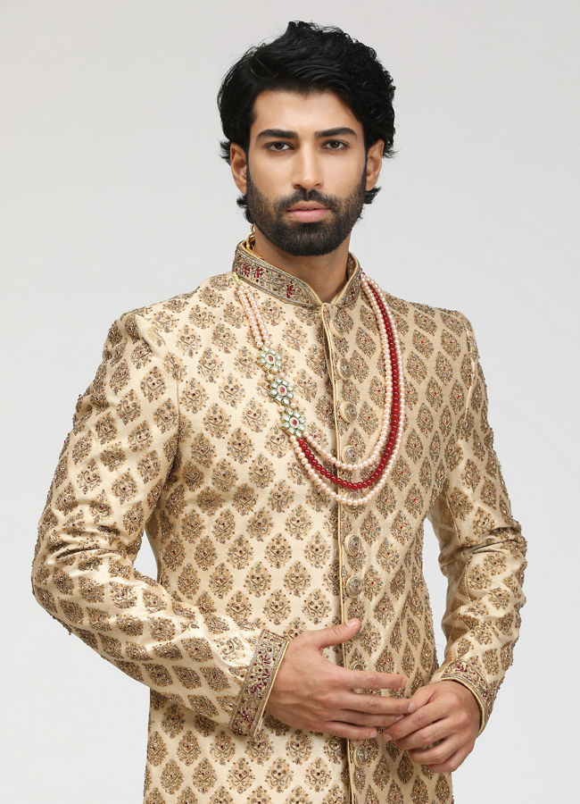 Buy Contemporary Biscuit Color Sherwani Online Manyavar Very well made.