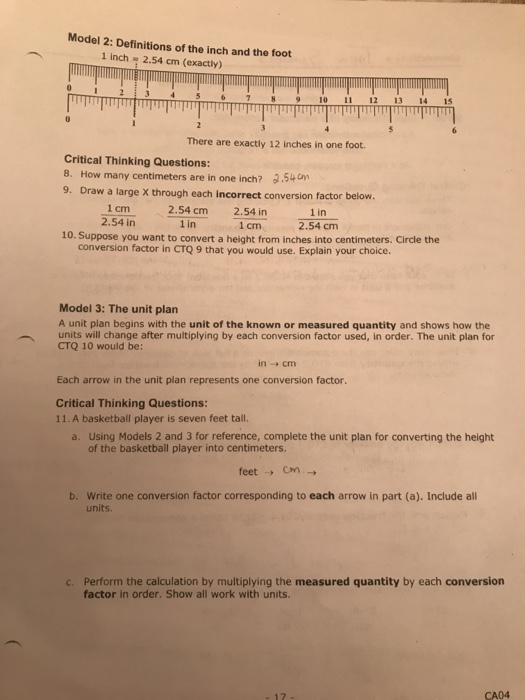 Solved Model 2 Definitions of the inch and the foot 1 inch Very well made.