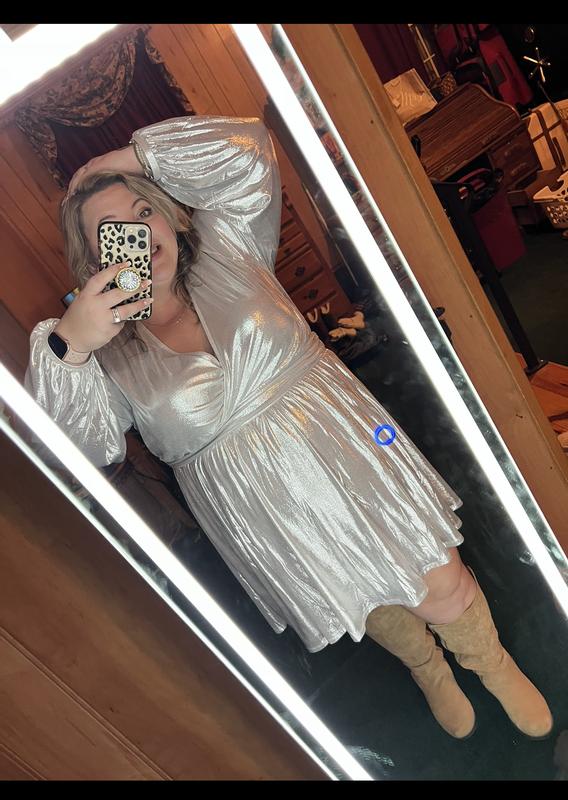 Plus Size Silver Metallic Shimmer Ribbed Knit Trapeze Dress Torrid Very well made.